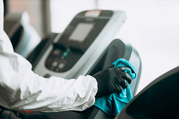 Profissionais com treinamento especializado em limpeza e manutenção de academias.